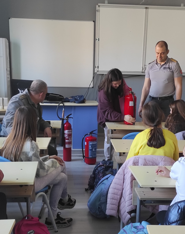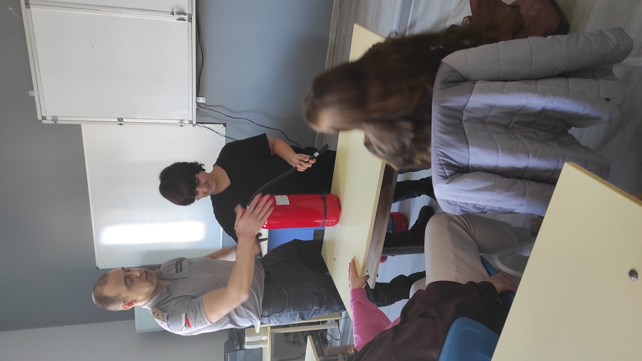 Разбраха също кои са различните видове пожарогасители и при какъв вид пожари се използват. Всички желаещите пробваха как се борави с пожарогасител и се справиха чудесно.