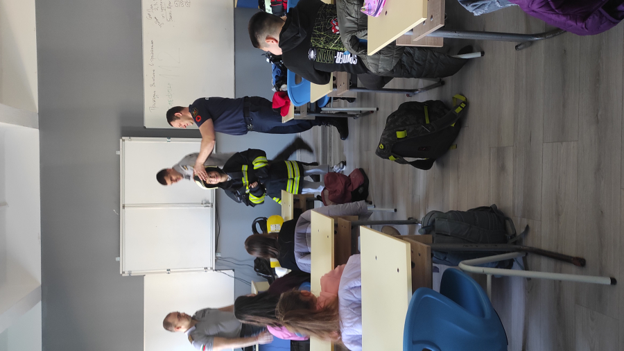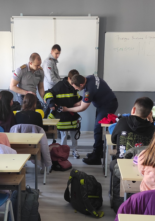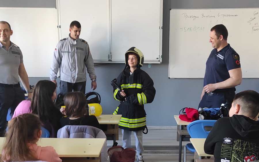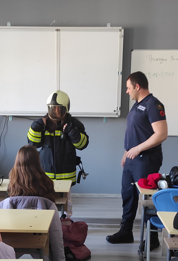 Гостите разказаха на учениците какво представлява професията на пожарникаря, пред какви предизвикателства са изправени, какво оборудване и защитно облекло използват.