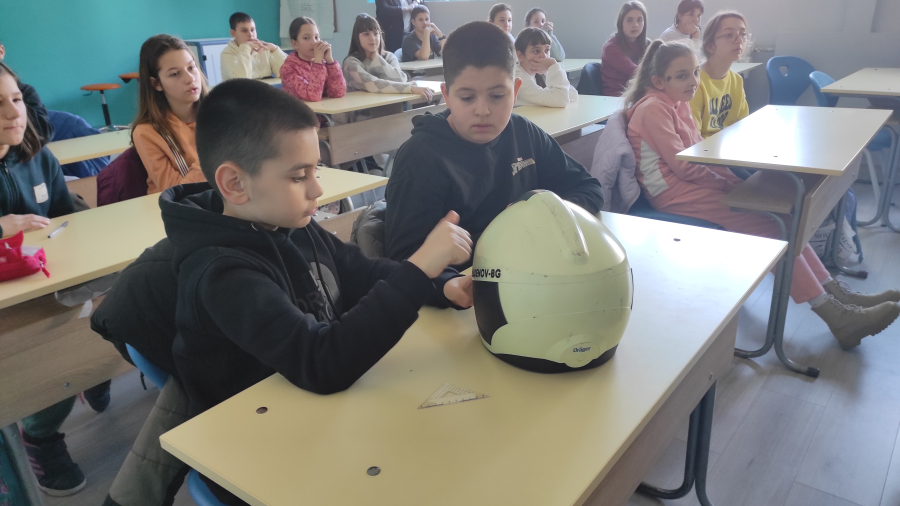 С огромен интерес петокласниците разгледаха част от оборудването, което бяха донесли пожарникарите. Държаха в ръцете си различните видове защитни каски, маски, колан, а най-ентусиазираните дори пробваха защитното облекло. Научиха как работи дихателния апарат, който огнеборците използват, при условия на задимяване и недостиг на кислород.
